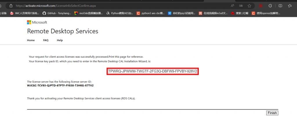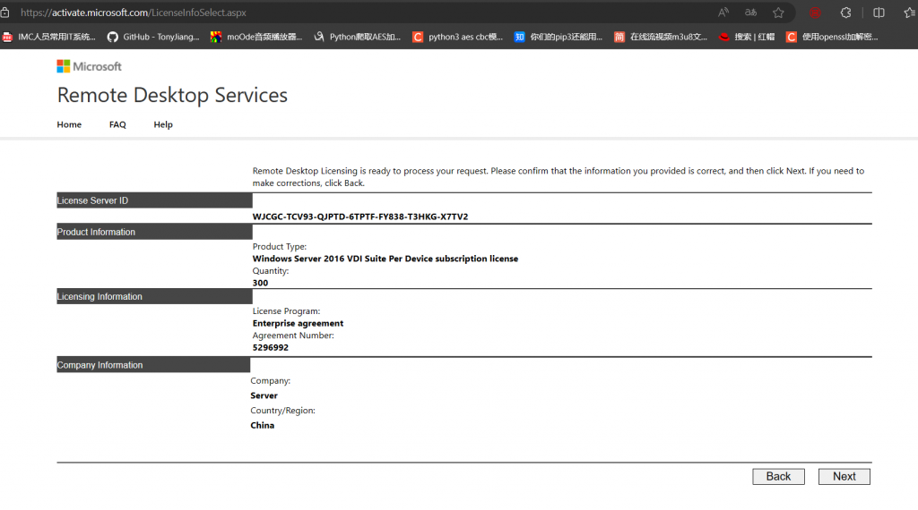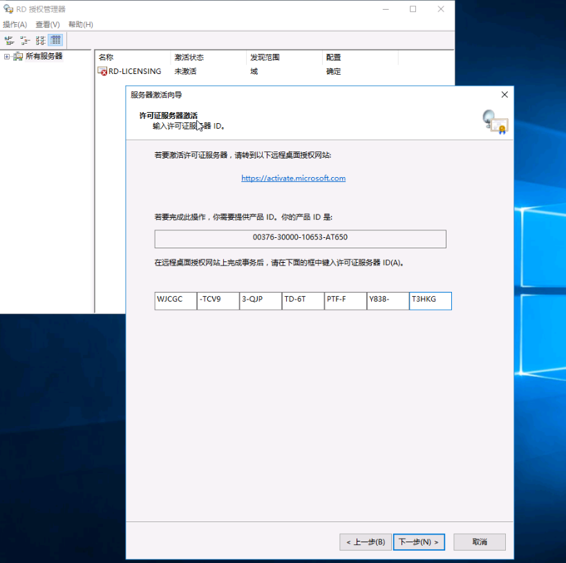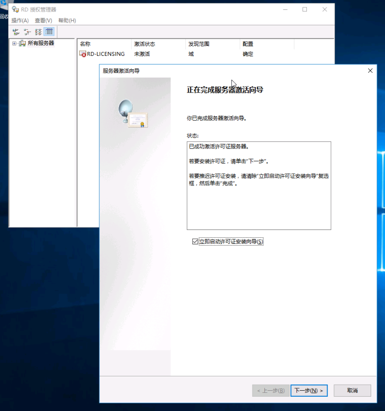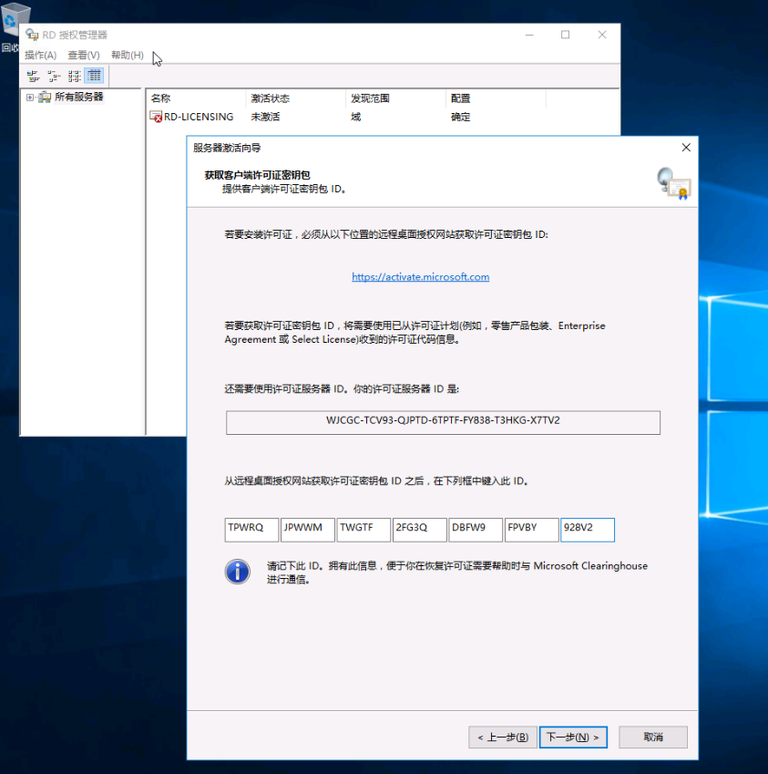 RD远程桌面授权激活 发表于 2023-09-21 1.99k 次阅读 安装远程桌面授权后,右键进行激活,选择web浏览器 选择启动许可证服务器 输入桌面给的产品ID 给出ID 这里输入前面给的许可证ID 赏